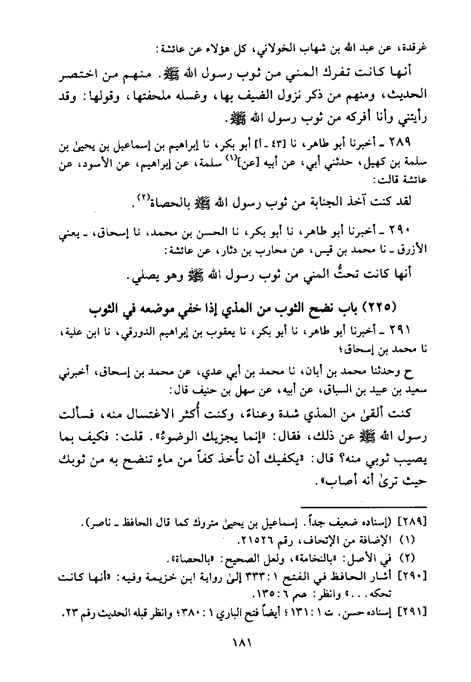[290] أشار الحافظ في الفتح 1: 333 إلى رواية ابن خزيمة وفيه: "أنها كانت تحكه ... " وانظر: حم 6: 135.