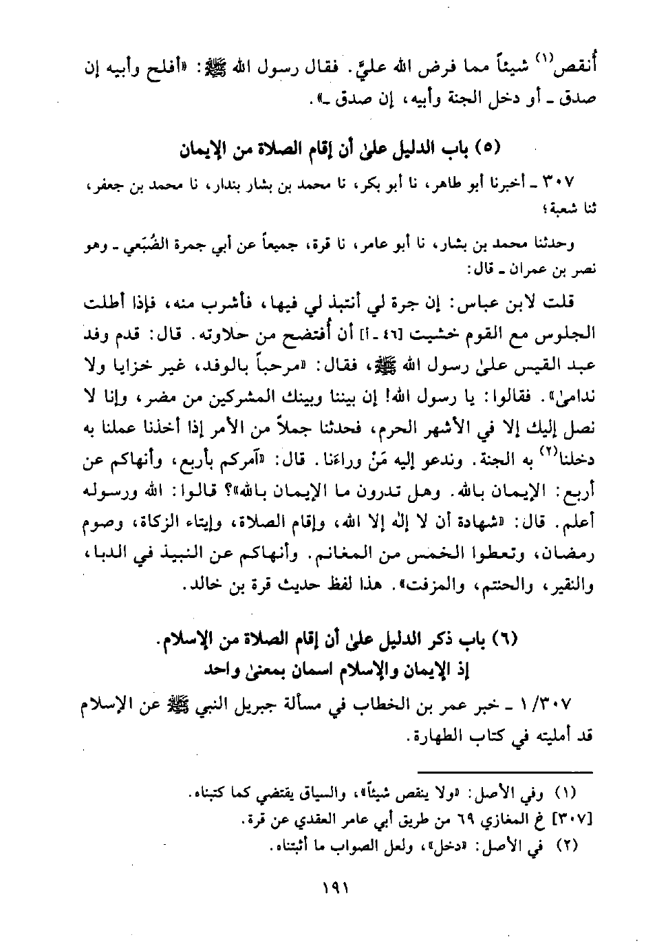 307/ 1 - خَبَرُ عُمَرَ بْنِ الْخَطَّابِ فِي مَسْأَلَةِ جِبْرِيلَ النَّبِيَّ - صَلَّى اللَّهُ عَلَيْهِ وَسَلَّمَ - عَنِ الْإِسْلَامِ قَدْ أَمْلَيْتُهُ فِي كِتَابِ الطَّهَارَةِ.