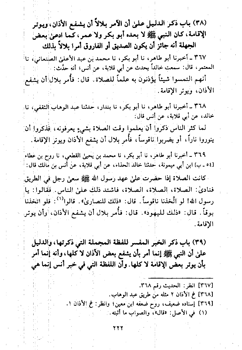 (38) بَابُ ذِكْرِ الدَّلِيلِ عَلَى أَنَّ الْآمِرَ بِلَالًا أَنْ يَشْفَعَ الْأَذَانَ، وَيُوتِرَ الْإِقَامَةَ، كَانَ النَّبِيَّ - صَلَّى اللَّهُ عَلَيْهِ وَسَلَّمَ - لَا بَعْدَهُ أَبُو بَكْرٍ وَلَا عُمَرُ، كَمَا ادَّعَى بَعْضُ الْجَهَلَةِ أَنَّهُ جَائِزٌ أَنْ يَكُونَ الصِّدِّيقُ أَوِ الْفَارُوقُ أَمَرَا بِلَالًا بِذَلِكَ