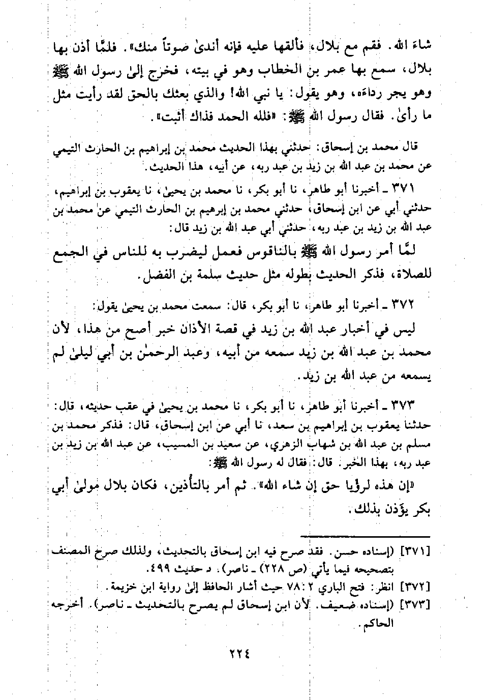 373 - أَخْبَرَنَا أَبُو طَاهِرٍ، نَا أَبُو بَكْرٍ، نَا مُحَمَّدُ بْنُ يَحْيَى فِي عَقِبِ حَدِيثِهِ، قَالَ: حَدَّثَنَا يَعْقُوبُ بْنُ إِبْرَاهِيمَ بْنِ سَعْدٍ، نَا أَبِي، عَنِ ابْنِ إِسْحَاقَ، قَالَ: فَذَكَرَ مُحَمَّدُ بْنُ مُسْلِمِ بْنِ عَبْدِ اللَّهِ بْنِ شِهَابٍ الزُّهْرِيُّ، عَنْ سَعِيدِ بْنِ الْمُسَيَّبِ، عَنْ عَبْدِ اللَّهِ بْنِ زَيْدِ بْنِ عَبْدِ رَبِّهِ، بِهَذَا الْخَبَرِ قَالَ: فَقَالَ لَهُ رَسُولُ اللَّهِ - صَلَّى اللَّهُ عَلَيْهِ وَسَلَّمَ -: