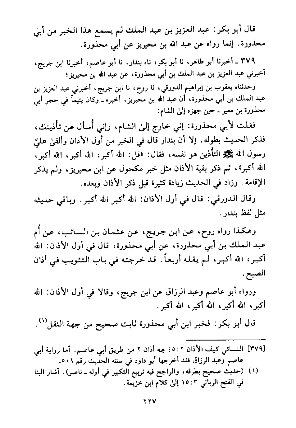 [379] النسائي كيف الأذان 2: 5؛ جه أذان 2 من طريق أبي عاصم. أما رواية أبي عاصم وعبد الرزاق فقد أخرجها أبو داود في سننه الحديث رقم 501.