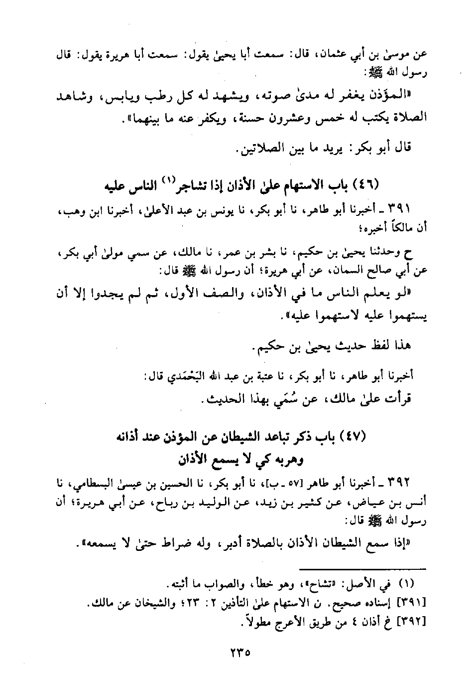 [391] إسناده صحيح. ن الاستهام على التأذين 2: 23؛ والشيخان عن مالك.