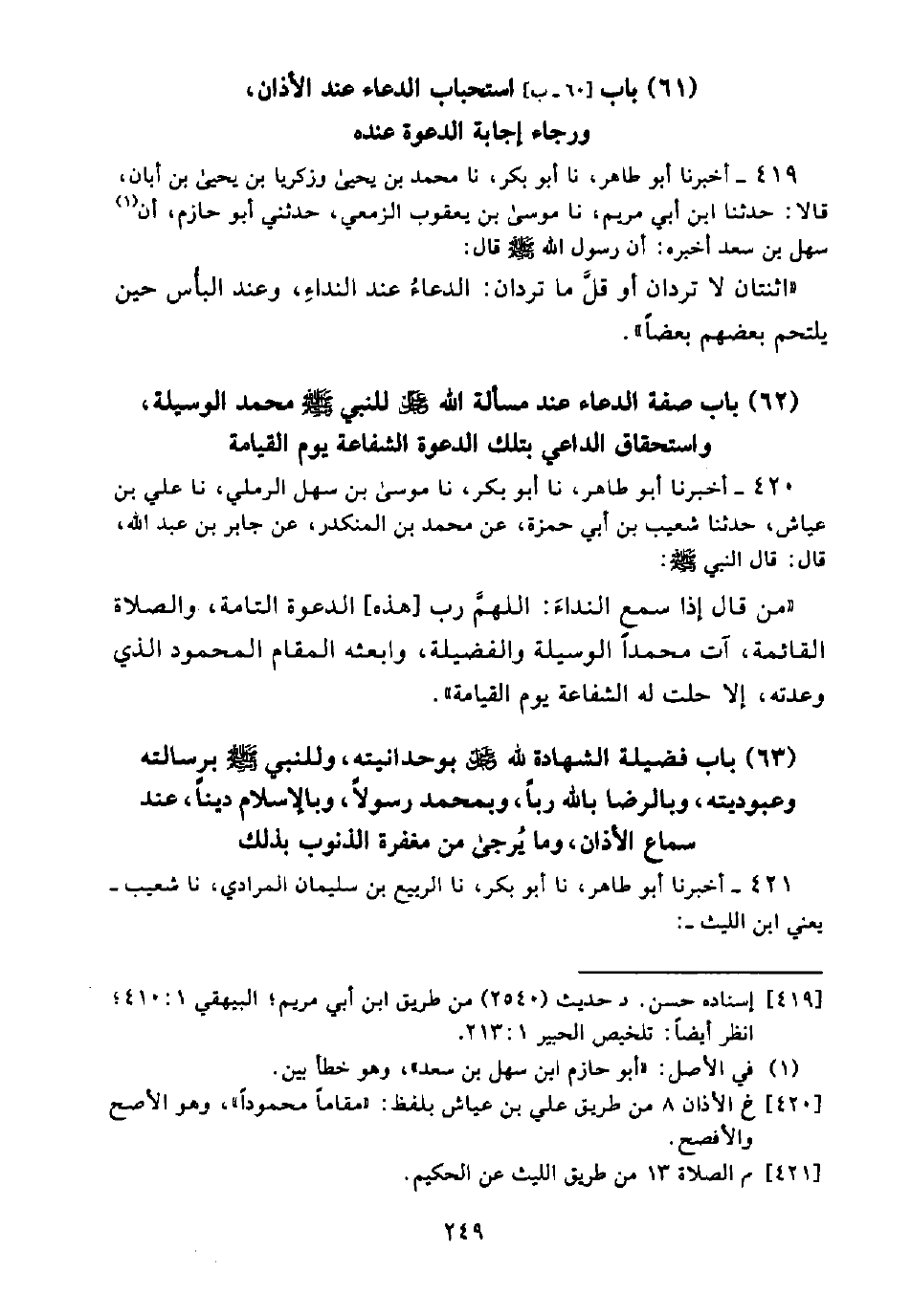 [419] إسناده حسن. د حديث (2540) من طريق ابن أبي مريم؛ البيهقي 1: 410؛ انظر أيضاً: تلخيص الحبير 1: 213.