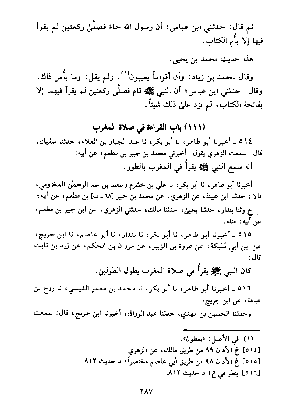 (111) بَابُ الْقِرَاءَةِ فِي صَلَاةِ الْمَغْرِبِ