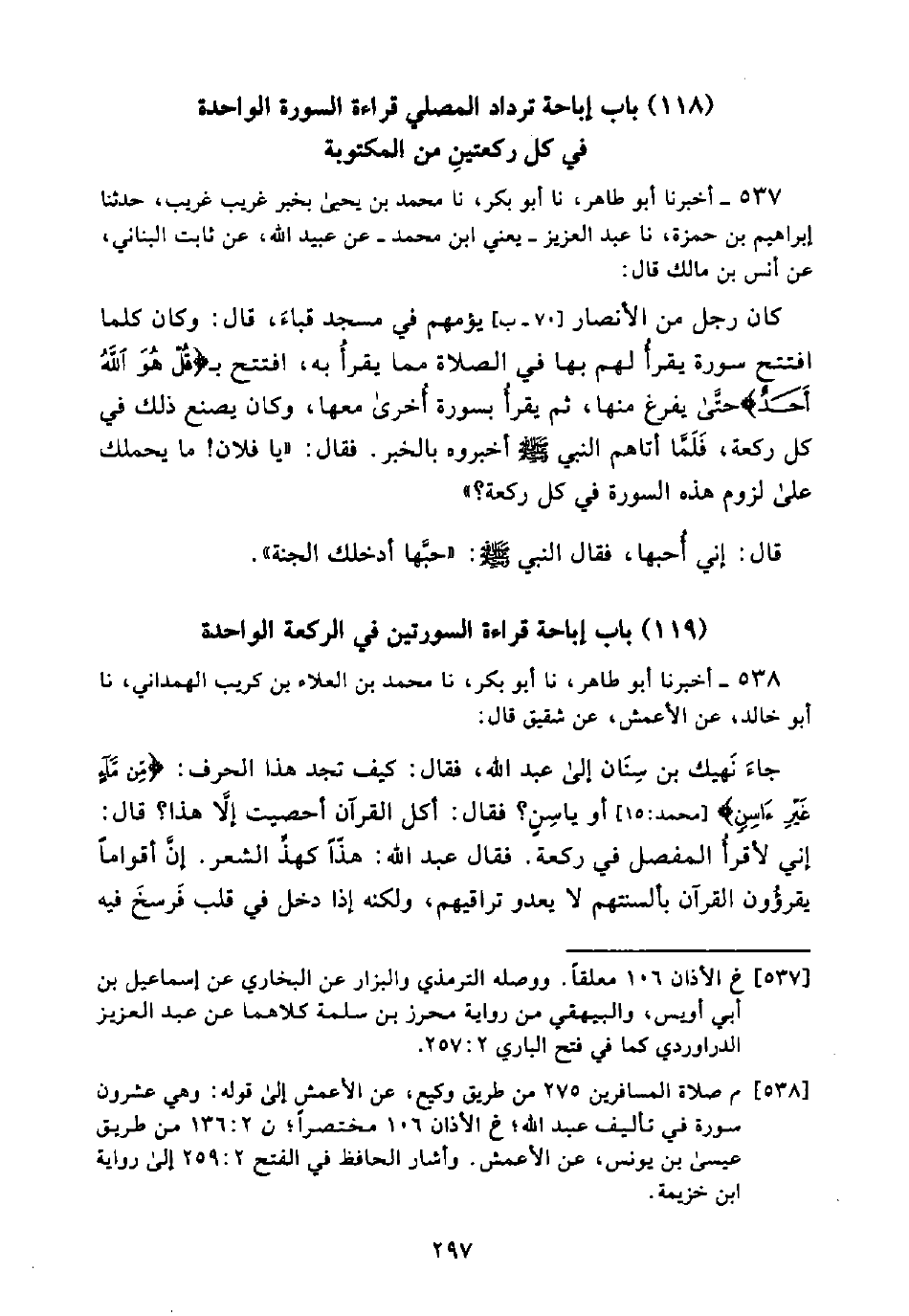 (119) بَابُ إِبَاحَةِ قِرَاءَةِ السُّورَتَيْنِ فِي الرَّكْعَةِ الْوَاحِدَةِ