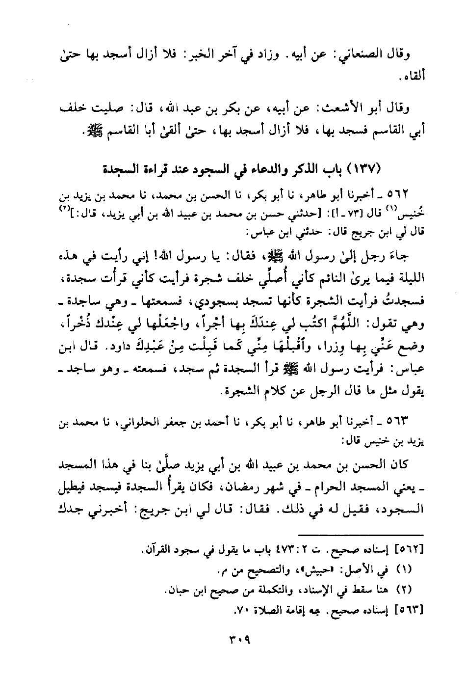 [562] إسناده صحيح. ت 2: 473 باب ما يقول في سجود القرآن.