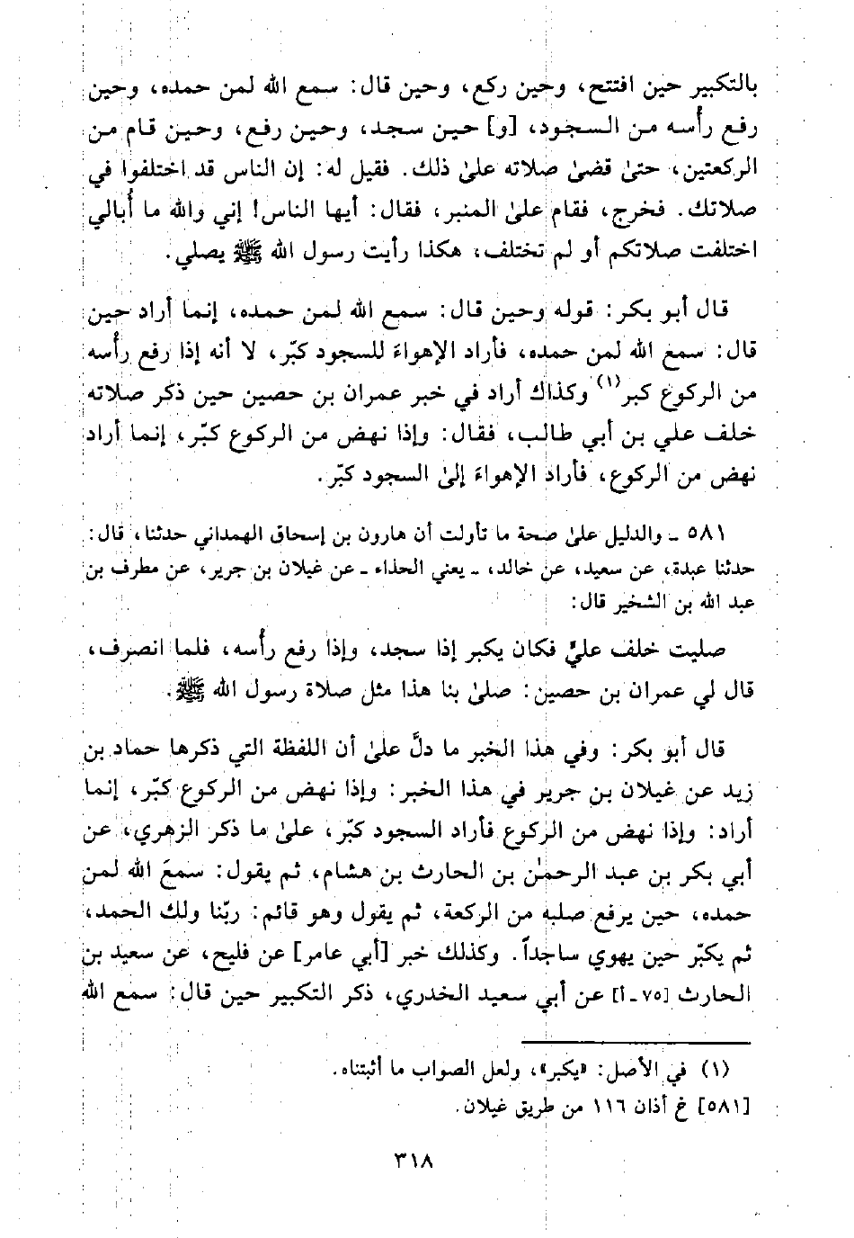 قَالَ أَبُو بَكْرٍ: قَوْلُهُ وَحِينَ قَالَ: سَمِعَ اللَّهُ لِمَنْ حَمِدَهُ، إِنَّمَا أَرَادَ حِينَ قَالَ: سَمِعَ اللَّهُ لِمَنْ حَمِدَهُ، فَأَرَادَ الْإِهْوَاءَ لِلسُّجُودِ كَبَّرَ، لَا أَنَّهُ إِذَا رَفَعَ رَأْسَهُ مِنَ الرُّكُوعِ كَبَّرَ (¬1) وَكَذَاكَ أَرَادَ فِي خَبَرِ عِمْرَانَ بْنِ حُصَيْنٍ حِينَ ذَكَرَ صَلَاتَهُ خَلْفَ عَلِيِّ بْنِ أَبِي طَالِبٍ، فَقَالَ: وَإِذَا نَهَضَ مِنَ الرُّكُوعِ كَبَّرَ، إِنَّمَا أَرَادَ نَهَضَ مِنَ الرُّكُوعِ، فَأَرَادَ الْإِهْوَاءَ إِلَى السُّجُودِ كَبَّرَ.