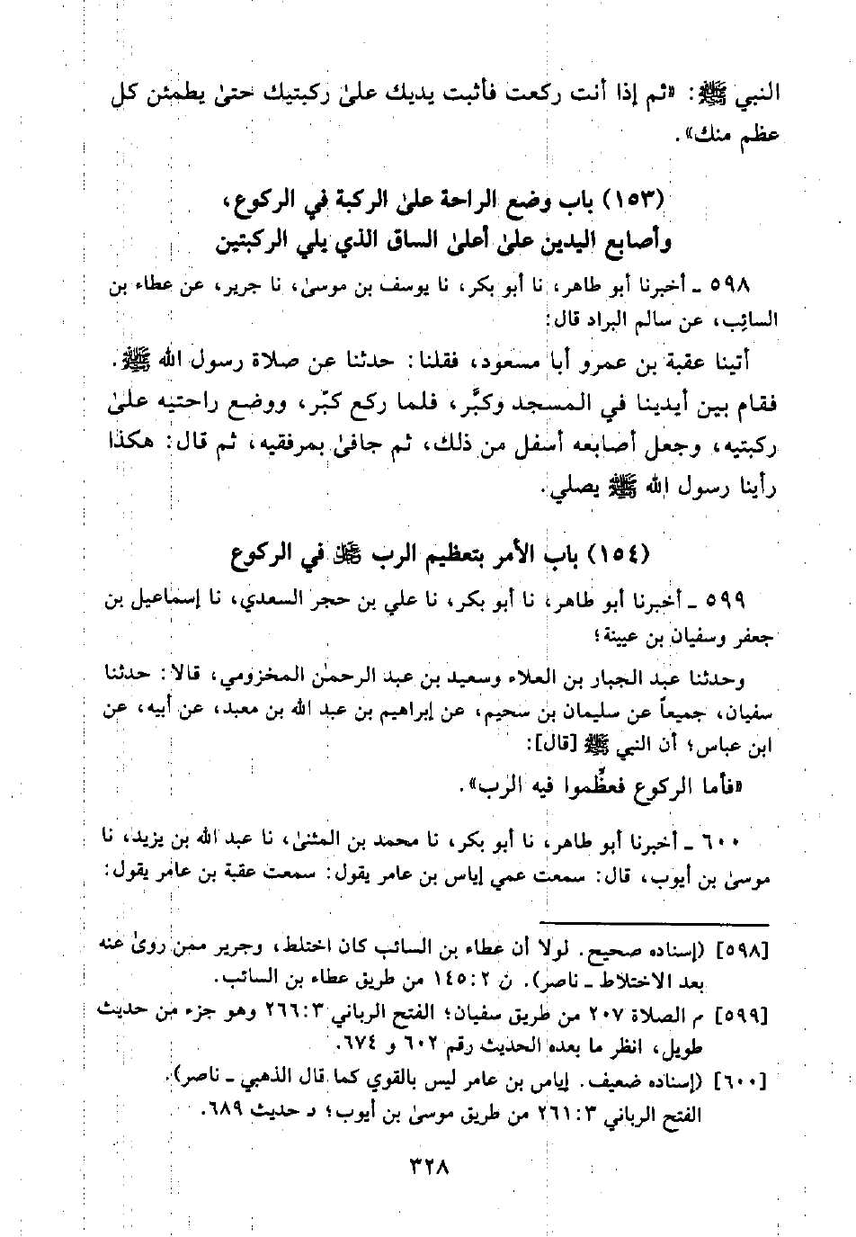 (154) بَابُ الْأَمْرِ بِتَعْظِيمِ الرَّبِّ عَزَّ وَجَلَّ فِي الرُّكُوعِ