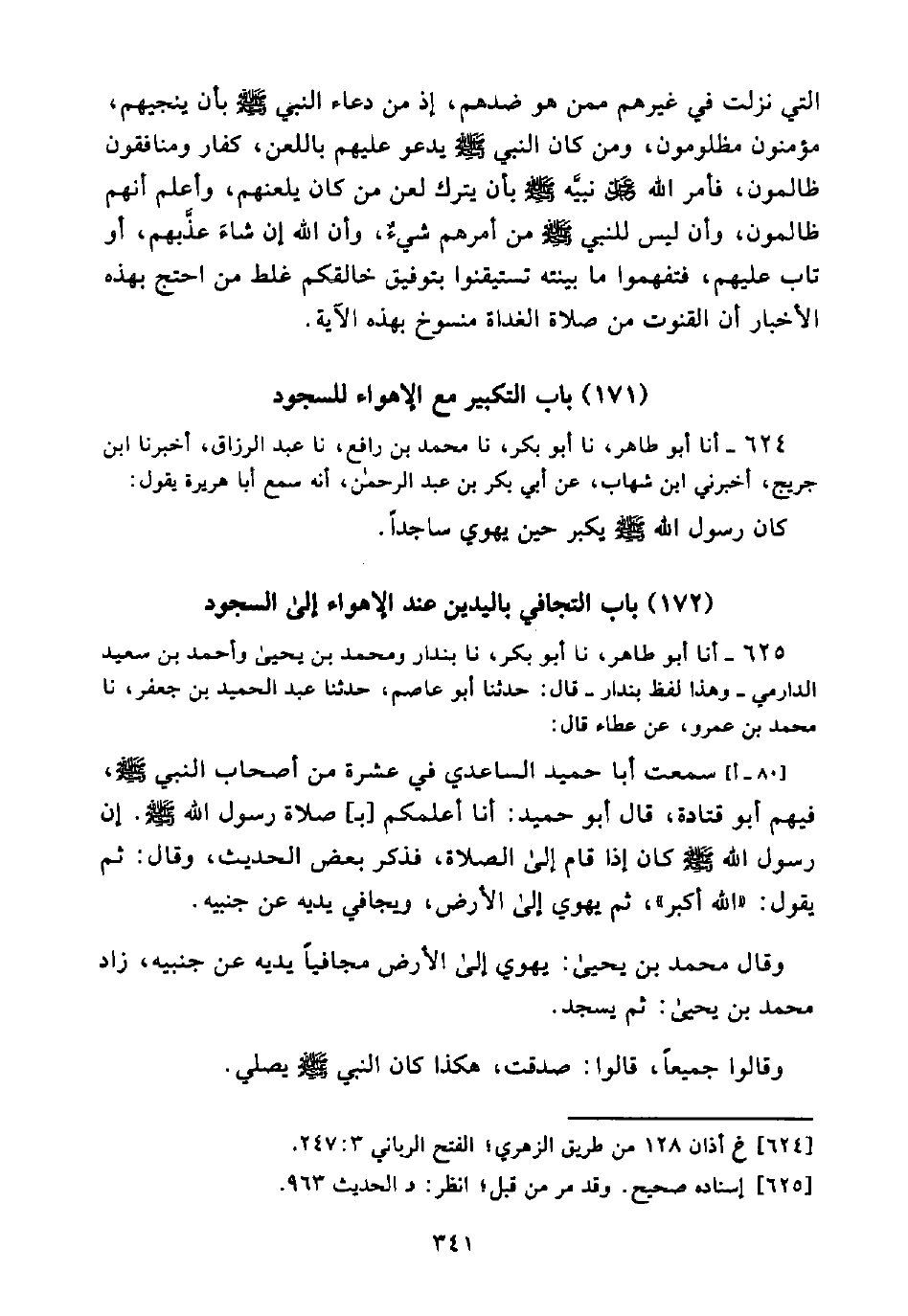 624 - أَنَا أَبُو طَاهِرٍ، نَا أَبُو بَكْرٍ، نَا مُحَمَّدُ بْنُ رَافِعٍ، نَا عَبْدُ الرَّزَّاقِ، أَخْبَرَنَا ابْنُ جُرَيْجٍ، أَخْبَرَنِي ابْنُ شِهَابٍ، عَنْ أَبِي بَكْرِ بْنِ عَبْدِ الرَّحْمَنِ، أَنَّهُ سَمِعَ أَبَا هُرَيْرَةَ يَقُولُ: كَانَ رَسُولُ اللَّهِ صَلَّى اللَّهُ عَلَيْهِ وَسَلَّمَ يُكَبِّرُ حِينَ يَهْوِي سَاجِدًا.