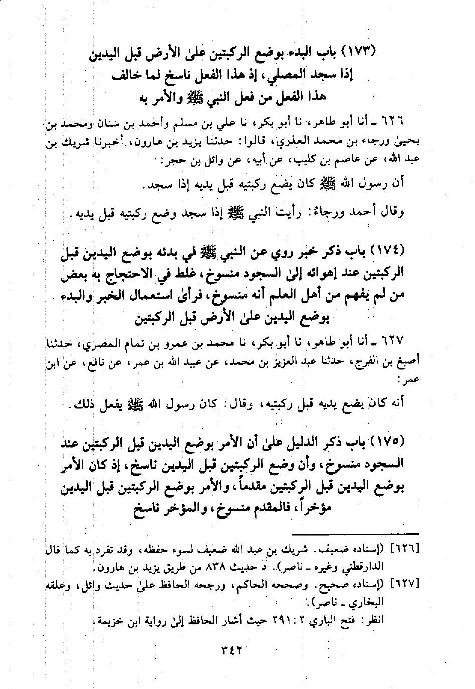 (175) بَابُ ذِكْرِ الدَّلِيلِ عَلَى أَنَّ الْأَمْرَ بِوَضْعِ الْيَدَيْنِ قَبْلَ الرُّكْبَتَيْنِ عِنْدَ السُّجُودِ مَنْسُوخٌ، وَأَنَّ وَضْعَ الرُّكْبَتَيْنِ قَبْلَ الْيَدَيْنِ نَاسِخٌ، إِذْ كَانَ الْأَمْرُ بِوَضْعِ الْيَدَيْنِ قَبْلَ الرُّكْبَتَيْنِ مُقَدَّمًا، وَالْأَمْرُ بِوَضْعِ الرُّكْبَتَيْنِ قَبْلَ الْيَدَيْنِ مُؤَخَّرًا، فَالْمُقَدَّمُ مَنْسُوخٌ، وَالْمُؤَخَّرُ نَاسِخٌ