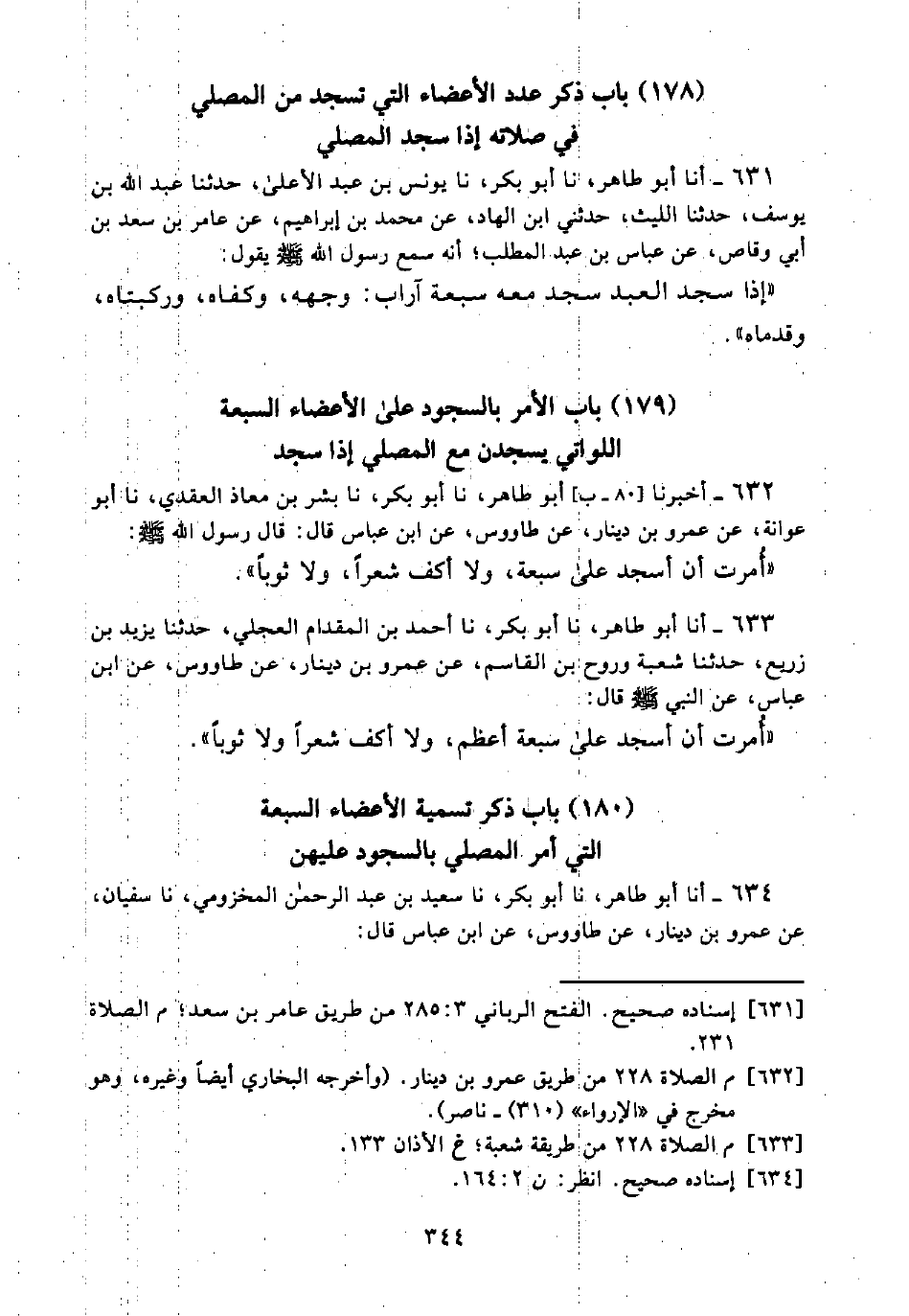 (180) بَابُ ذِكْرِ تَسْمِيَةِ الْأَعْضَاءِ السَّبْعَةِ الَّتِي أُمِرَ الْمُصَلِّي بِالسُّجُودِ عَلَيْهِنَّ