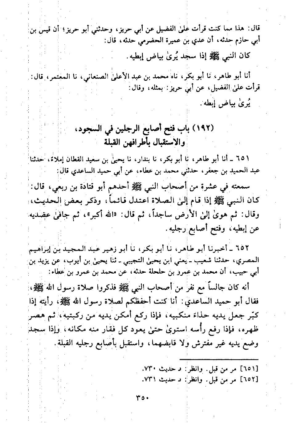 (192) بَابُ فَتْحِ أَصَابِعِ الرِّجْلَيْنِ فِي السُّجُودِ، وَالِاسْتِقْبَالِ بِأَطْرَافِهِنَّ الْقِبْلَةَ