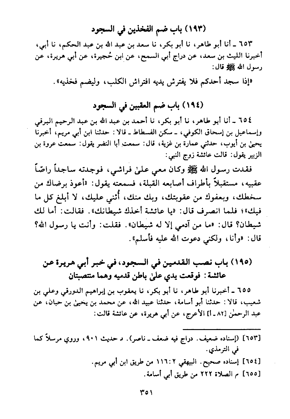 (195) بَابُ نَصْبِ الْقَدَمَيْنِ فِي السُّجُودِ، فِي خَبَرِ أَبِي هُرَيْرَةَ عَنْ عَائِشَةَ: فَوَقَعَتْ يَدِي عَلَى بَاطِنِ قَدَمَيْهِ وَهُمَا مُنْتَصِبَتَانِ