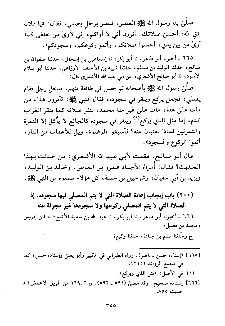 (200) بَابُ إِيجَابِ إِعَادَةِ الصَّلَاةِ الَّتِي لَا يُتِمُّ الْمُصَلِّي فِيهَا سُجُودَهُ، إِذِ الصَّلَاةُ الَّتِي لَا يُتِمُّ الْمُصَلِّي رُكُوعَهَا وَلَا سُجُودَهَا غَيْرُ مُجْزِئَةٍ عَنْهُ