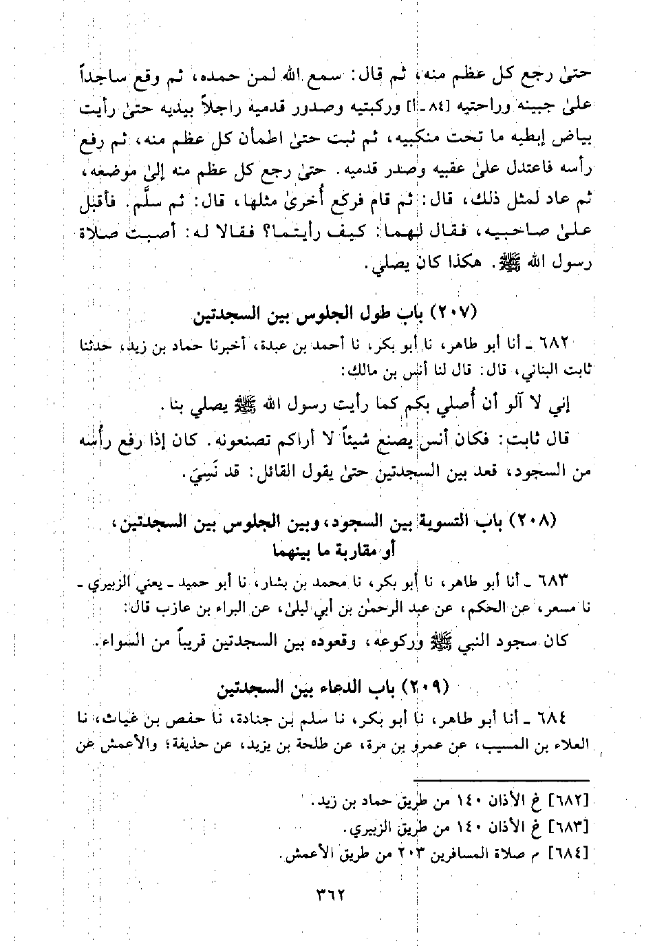 (208) بَابُ التَّسْوِيَةِ بَيْنَ السُّجُودِ، وَبَيْنَ الْجُلُوسِ بَيْنَ السَّجْدَتَيْنِ، أَوْ مُقَارَبَةُ مَا بَيْنَهُمَا