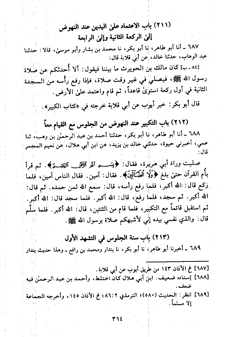 (211) بَابُ الِاعْتِمَادِ عَلَى الْيَدَيْنِ عِنْدَ النُّهُوضِ إِلَى الرَّكْعَةِ الثَّانِيَةِ وَإِلَى الرَّابِعَةِ