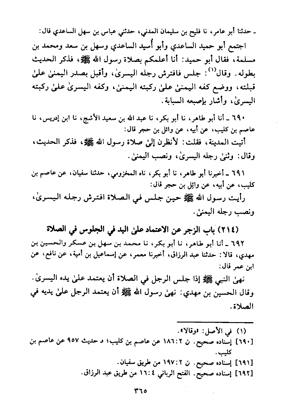 (214) بَابُ الزَّجْرِ عَنِ الِاعْتِمَادِ عَلَى الْيَدِ فِي الْجُلُوسِ فِي الصَّلَاةِ