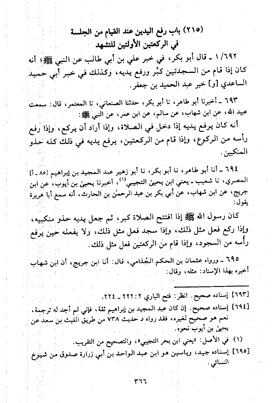 (215) بَابُ رَفْعِ الْيَدَيْنِ عِنْدَ الْقِيَامِ مِنَ الْجِلْسَةِ فِي الرَّكْعَتَيْنِ الْأُولَتَيْنِ لِلتَّشَهُّدِ