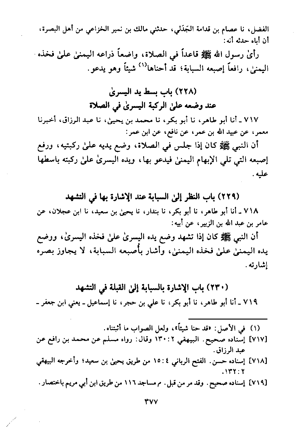 (230) بَابُ الْإِشَارَةِ بِالسَّبَّابَةِ إِلَى الْقِبْلَةِ فِي التَّشَهُّدِ