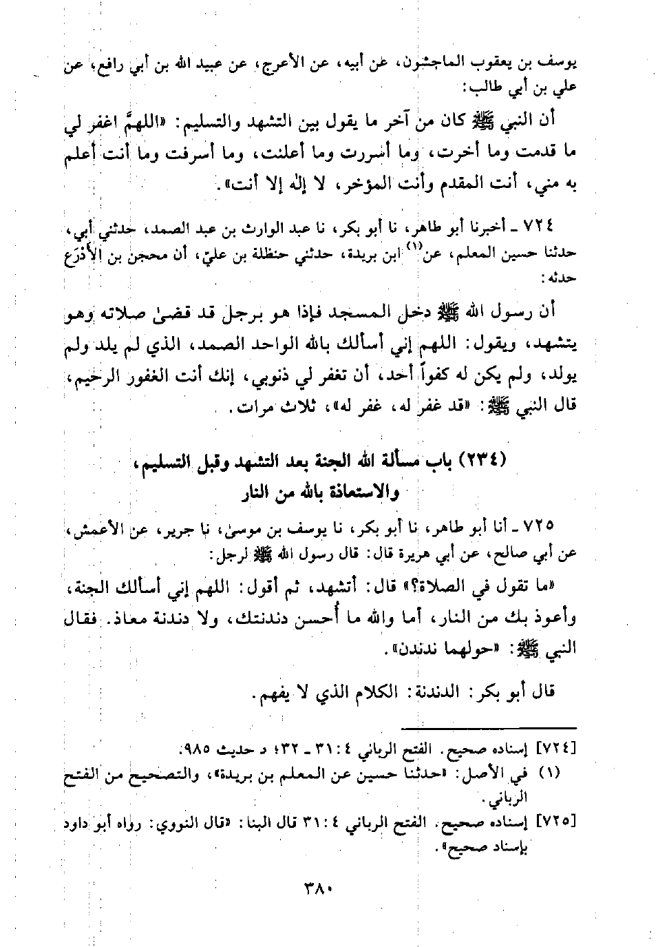 (234) بَابُ مَسْأَلَةِ اللَّهِ الْجَنَّةَ بَعْدَ التَّشَهُّدِ وَقَبْلَ التَّسْلِيمِ، وَالِاسْتِعَاذَةِ بِاللَّهِ مِنَ النَّارِ