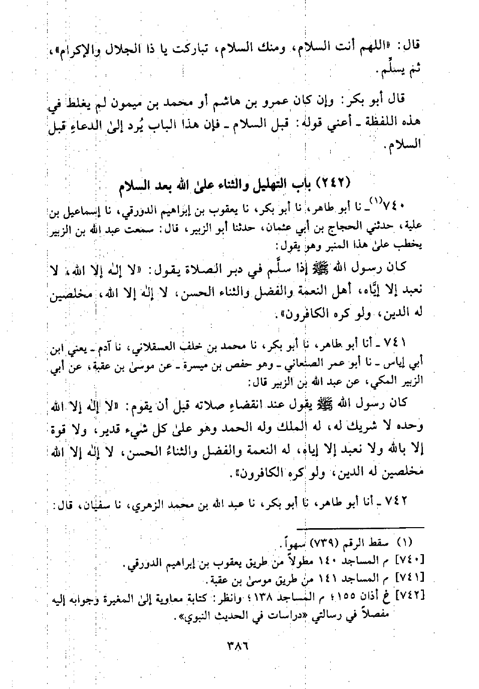 (242) بَابُ التَّهْلِيلِ وَالثَّنَاءِ عَلَى اللَّهِ بَعْدَ السَّلَامِ