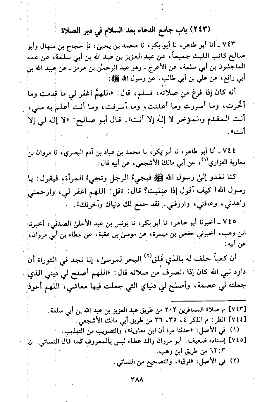 (243) بَابُ جَامِعِ الدُّعَاءِ بَعْدَ السَّلَامِ فِي دُبُرِ الصَّلَاةِ
