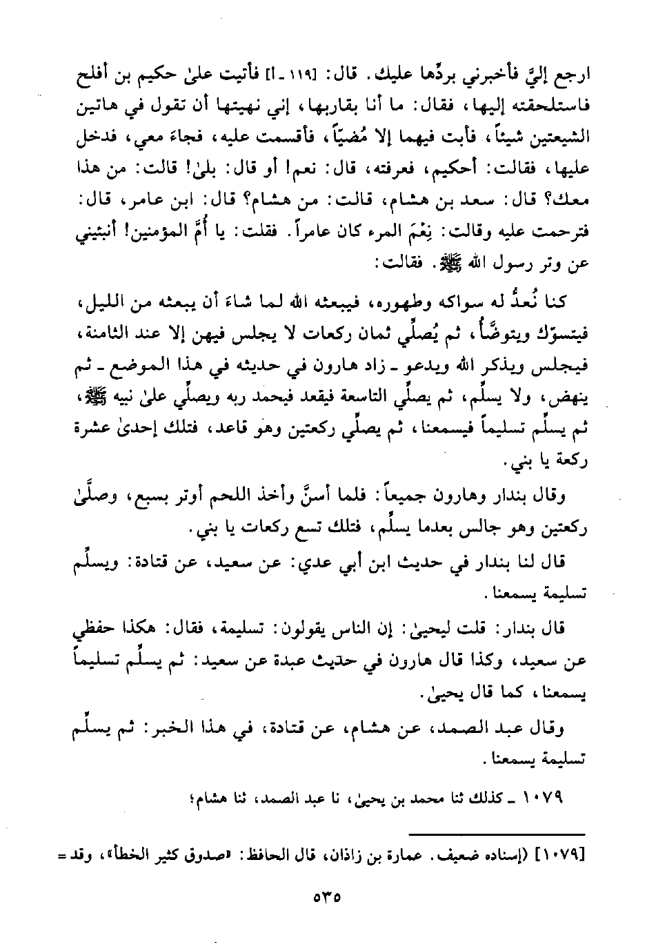 1079 - كَذَلِكَ ثَنَا مُحَمَّدُ بْنُ يَحْيَى، نَا عَبْدُ الصَّمَدِ، ثَنَا هِشَامٌ؛