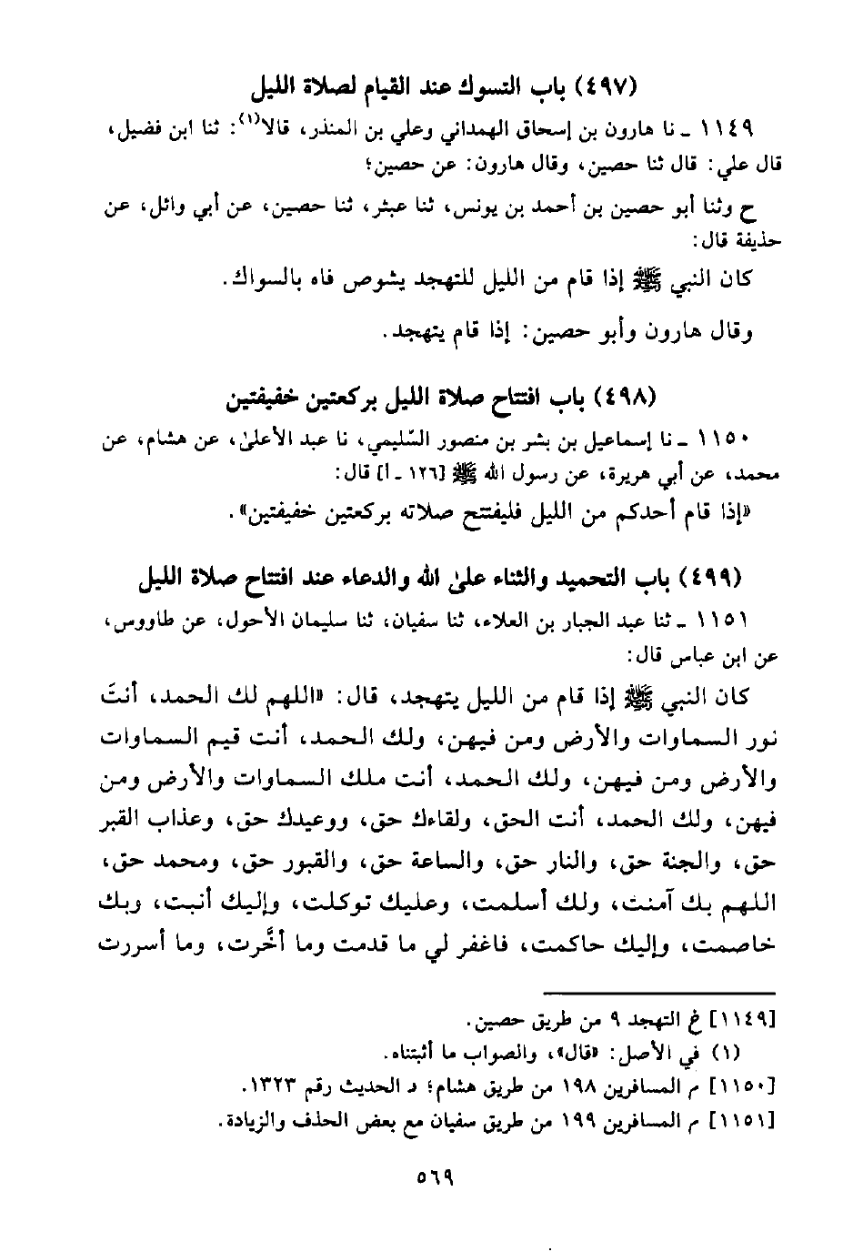 (499) بَابُ التَّحْمِيدِ وَالثَّنَاءِ عَلَى اللَّهِ وَالدُّعَاءِ عِنْدَ افْتِتَاحِ صَلَاةِ اللَّيْلِ
