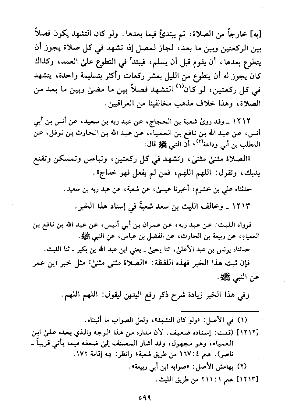 فَإِنْ ثَبَتَ هَذَا الْخَبَرُ فَهَذِهِ اللَّفْظَةُ: "الصَّلَاةُ مَثْنَى مَثْنَى" مِثْلُ خَبَرِ ابْنِ عُمَرَ عَنِ النَّبِيِّ صَلَّى اللَّهُ عَلَيْهِ وَسَلَّمَ.
