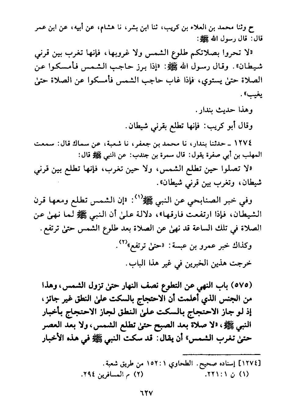 (575) بَابُ النَّهْيِ عَنِ التَّطَوُّعِ نِصْفَ النَّهَارِ حَتَّى تَزُولَ الشَّمْسُ، وَهَذَا مِنَ الْجِنْسِ الَّذِي أَعْلَمْتُ أَنَّ الِاحْتِجَاجَ بِالسَّكْتِ عَلَى النُّطْقِ غَيْرُ جَائِزٍ، إِذْ لَوْ جَازَ الِاحْتِجَاجُ بِالسَّكْتِ عَلَى النُّطْقِ لَجَازَ الِاحْتِجَاجُ بِأَخْبَارِ النَّبِيِّ صَلَّى اللَّهُ عَلَيْهِ وَسَلَّمَ، "لَا صَلَاةَ بَعْدَ الصُّبْحِ حَتَّى تَطْلُعَ الشَّمْسُ، وَلَا بَعْدَ الْعَصْرِ حَتَّى تَغْرُبَ الشَّمْسُ" أَنْ يُقَالَ: قَدْ سَكَتَ النَّبِيُّ صَلَّى اللَّهُ عَلَيْهِ وَسَلَّمَ فِي هَذِهِ الْأَخْبَارِ