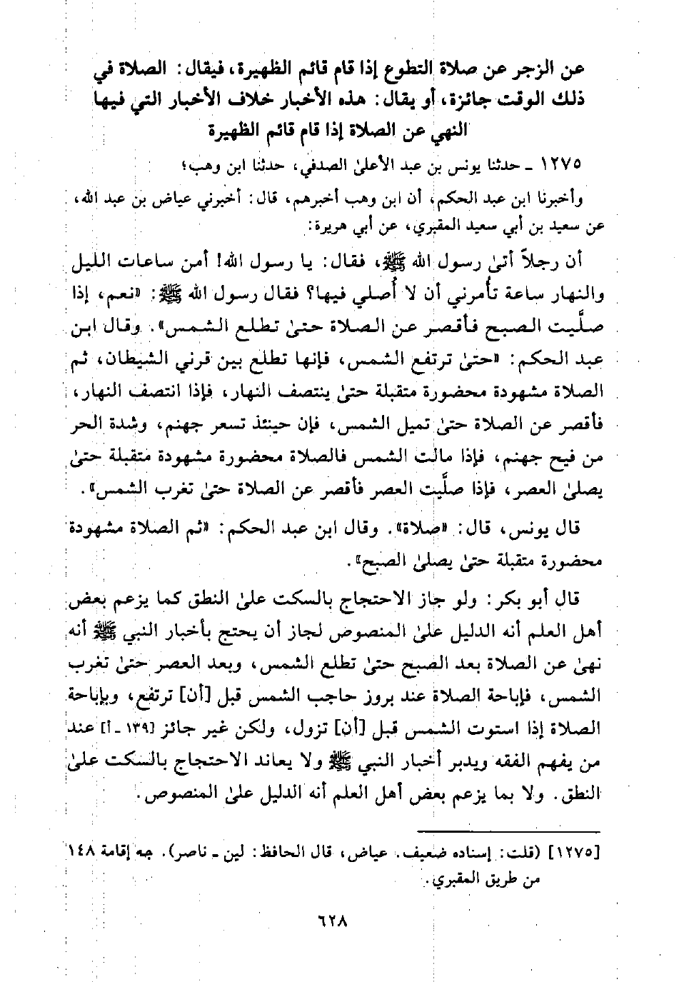 1275 - حَدَّثَنَا يُونُسُ بْنُ عَبْدِ الْأَعْلَى الصَّدَفِيُّ، حَدَّثَنَا ابْنُ وَهْبٍ؛ وَأَخْبَرَنَا ابْنُ عَبْدِ الْحَكَمِ، أَنَّ ابْنَ وَهْبٍ أَخْبَرَهُمْ، قَالَ: أَخْبَرَنِي عِيَاضُ بْنُ عَبْدِ اللَّهِ، عَنْ سَعِيدِ بْنِ أَبِي سَعِيدٍ الْمَقْبُرِيِّ، عَنْ أَبِي هُرَيْرَةَ: