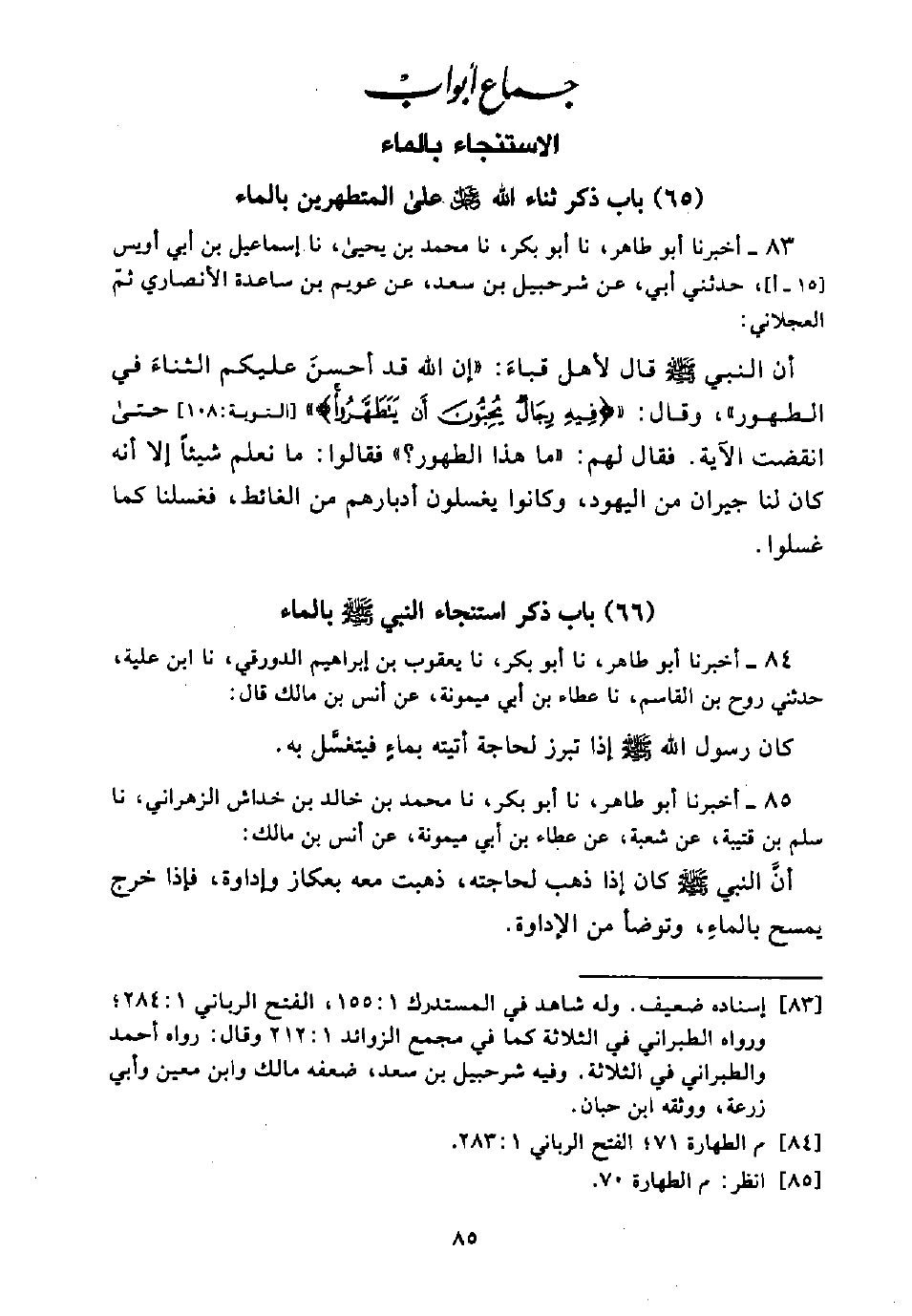 جُمَّاعُ أَبْوَابِ الِاسْتِنْجَاءِ بِالْمَاءِ