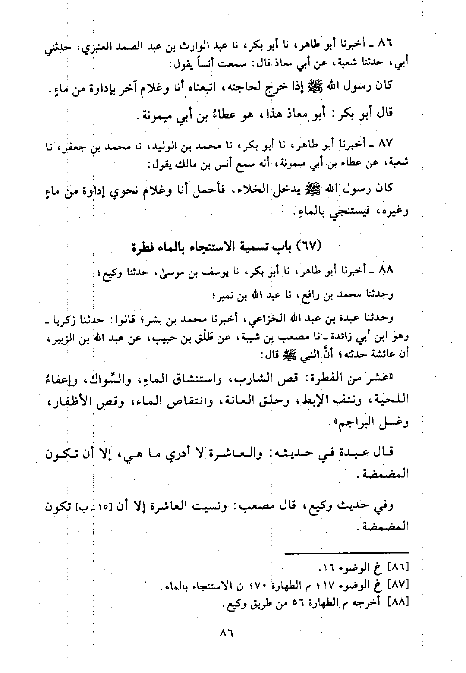 [87] خ الوضوء 17؛ م الطهارة 70؛ ن الاستنجاء بالماء.