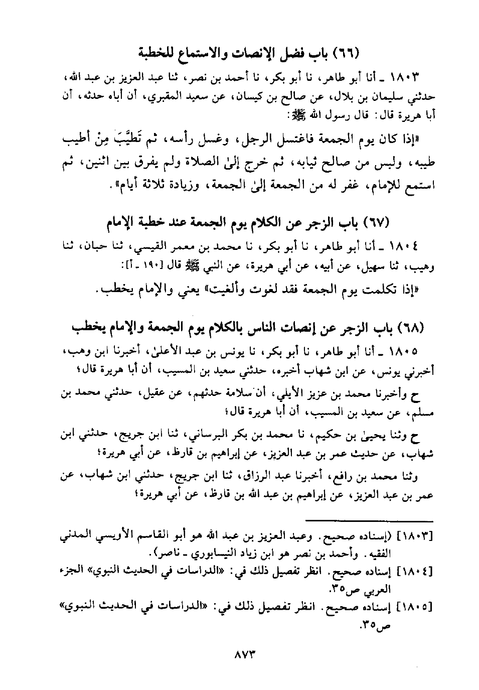 [1804] (إسناده صحيح. انظر تفصيل ذلك في: "الدراسات في الحديث النبوي" الجزء العربي ص 35.