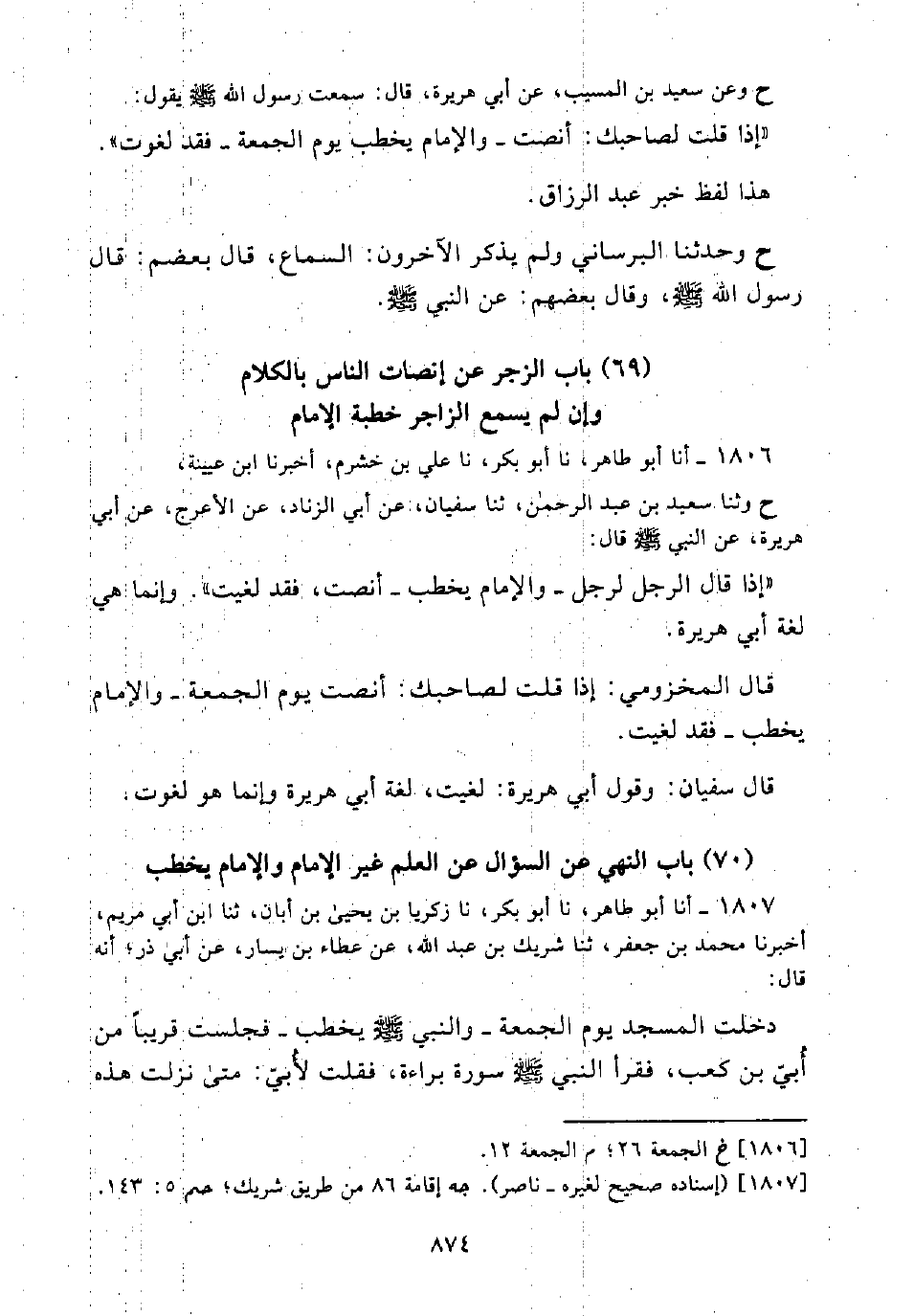 (69) بَابُ الزَّجْرِ عَنْ إِنْصَاتِ النَّاسِ بِالْكَلَامِ وَإِنْ لَمْ يَسْمَعْ الزاجر خُطْبَةَ الْإِمَامِ