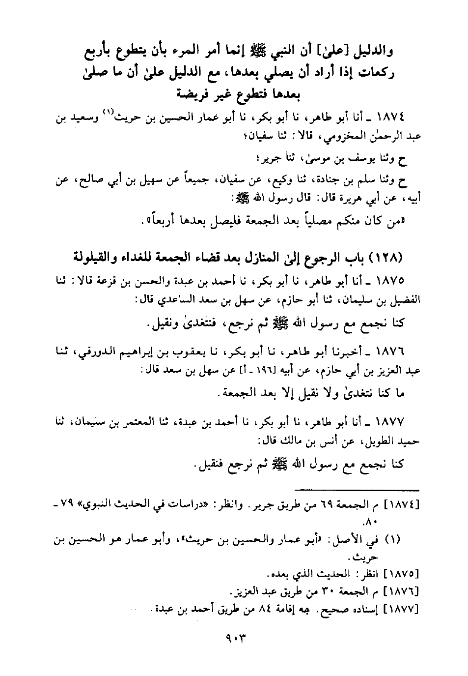 (128) بَابُ الرُّجُوعِ إِلَى الْمَنَازِلِ بَعْدَ قَضَاءِ الْجُمُعَةِ لِلْغَدَاءِ وَالْقَيْلُولَةِ