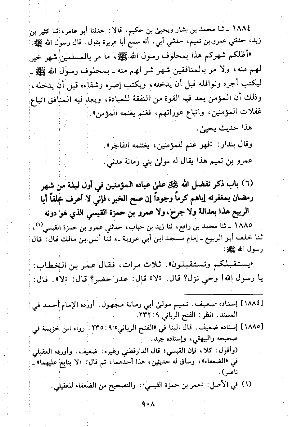 (6) بَابُ ذِكْرِ تَفْضُلِ اللَّهِ - عَزَّ وَجَلَّ - عَلَى عِبَادَةِ الْمُؤْمِنِينَ فِي أَوَّلِ لَيْلَةٍ مِنْ شَهْرِ رَمَضَانَ بِمَغْفِرَتِهِ إِيَّاهُمْ كَرَمًا وَجُودًا إِنْ صَحَّ الْخَبَرُ فَإِنِّي لَا أَعْرِفُ خَلَفًا أَبَا الرَّبِيعِ هَذَا بِعَدَالَةٍ وَلَا جَرْحٍ، وَلَا عَمْرَو بْنَ حَمْزَةَ الْقَيْسِيَّ الَّذِي هُوَ دُونَهُ