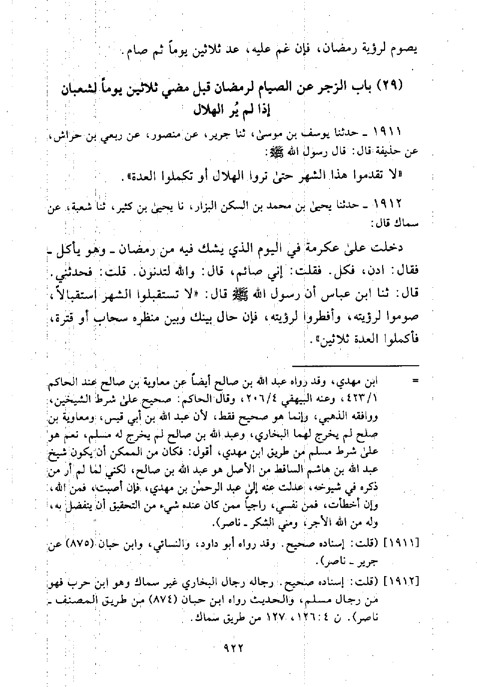 (29) بَاب الزَّجْرِ عَنِ الصِّيَامِ لِرَمَضَانَ قَبْلَ مُضِيِّ ثَلَاثِينَ يَوْمًا لِشَعْبَانَ إِذَا لَمْ يُرَ الْهِلَالُ