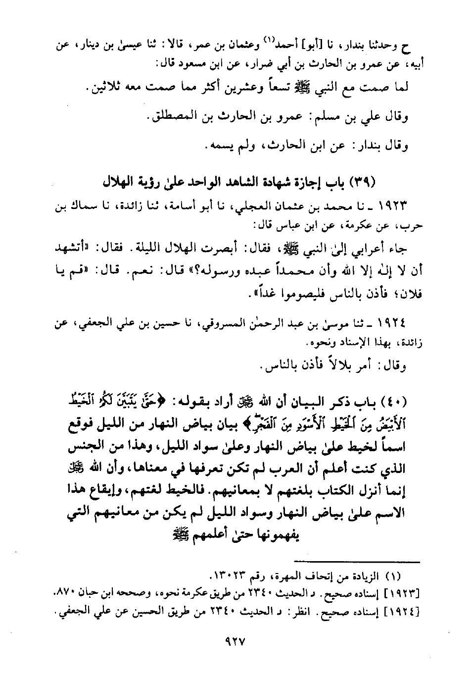 (39) بَاب إِجَازَةِ شَهَادَةِ الشَّاهِدِ الْوَاحِدِ عَلَى رُؤْيَةِ الْهِلَالِ