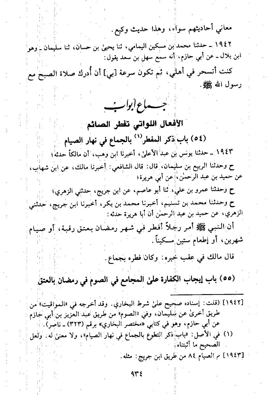 (¬1) في الأصل: "باب ذكر التطوع بالجماع في نهار الصيام"، ولا معنى له. ولعل الصحيح ما أثبتناه.