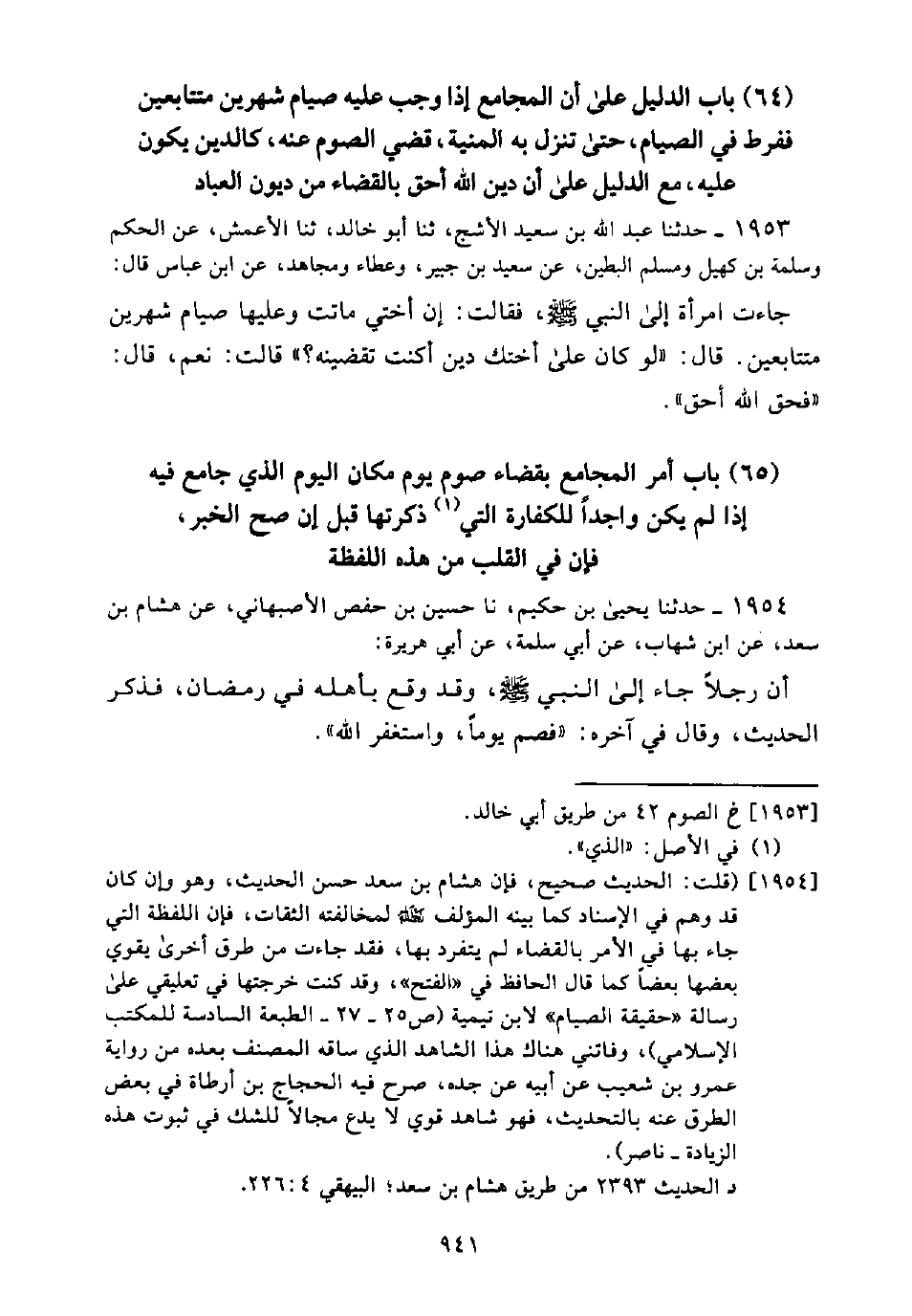 [1954] (قلت: الحديث صحيح، فإن هشام بن سعد حسن الحديث، وهو وإن كان قد وهم في الإسناد كما بينه المؤلف -رحمه الله- لمخالفته الثقات، فإن اللفظة التي جاء بها في الأمر بالقضاء لم يتفرد بها، فقد جاءت من طرق أخرى يقوي بعضها بعضًا كما قال الحافظ في "الفتح"، وقد كنت خرجتها في تعليقي على رسالة "حقيقة الصيام" لابن تيمية (ص 25 - 27 - الطبعة السادسة للمكتب الإسلامي)، وفاتني هناك هذا الشاهد الذي ساقه المصنف بعده من رواية عمرو بن شعيب عن أبيه عن جده، صرح فيه الحجاج بن أرطاة في بعض الطرق عنه بالتحديث، فهو شاهد قوي لا يدع مجالاً للشك في ثبوت هذه الزيادة - ناصر).