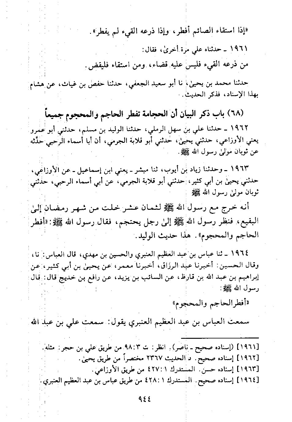 [1964] إسناده صحيح. المستدرك 1: 428 من طريق عباس بن عبد العظيم العنبري.