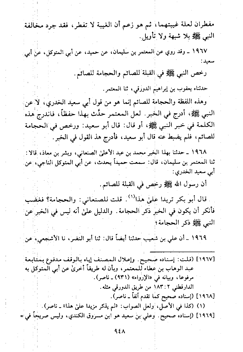 [1967] (قلت: إسناده صحيح. وإعلال المصنف إياه بالوقف مدفوع بمتابعة عبد الوهاب بن عطاء للمعتمر، وبأن له طريقًا أخرى عن أبي المتوكل به مرفوعا، وبيانه في "الإرواء" (931) - ناصر).