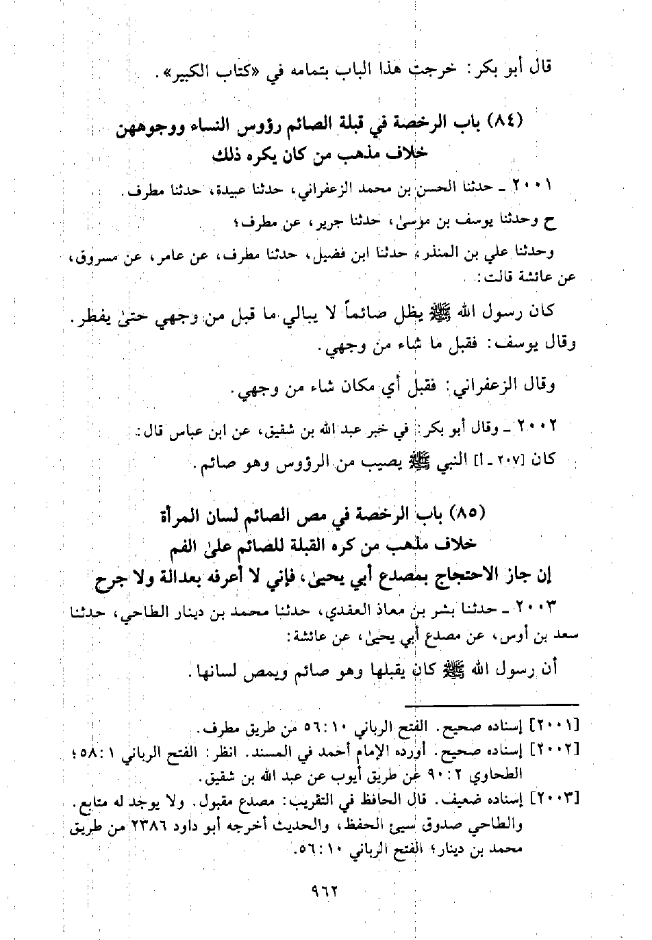(84) بَاب الرُّخْصَةِ فِي قُبْلَةِ الصَّائِمِ رُؤُوسَ النِّسَاءِ وَوُجُوهَهُنَّ خِلَافَ مَذْهَبِ مَنْ كَانَ يَكْرَهُ ذَلِكَ