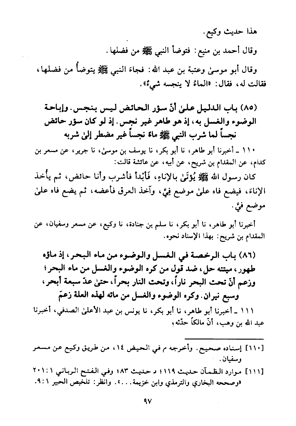 [110] إسناده صحيح. وأخرجه م في الحيض 14، من طريق وكيع عن مسعر وسفيان.