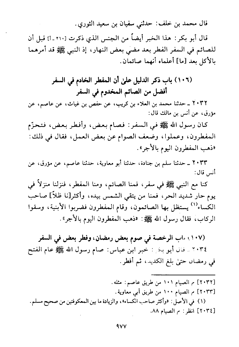 2034 - قَالَ أَبُو بَكْرٍ: خَبَر ابْنِ عَبَّاسٍ: صَامَ رَسُولُ اللَّه - صَلَّى اللَّه عَلَيْهِ وَسَلَّمَ - عَامَ الْفَتْحِ فِي رَمَضَانَ حَتَّى بَلَغَ الْكَدِيدَ، ثُمَّ أَفْطَرَ.