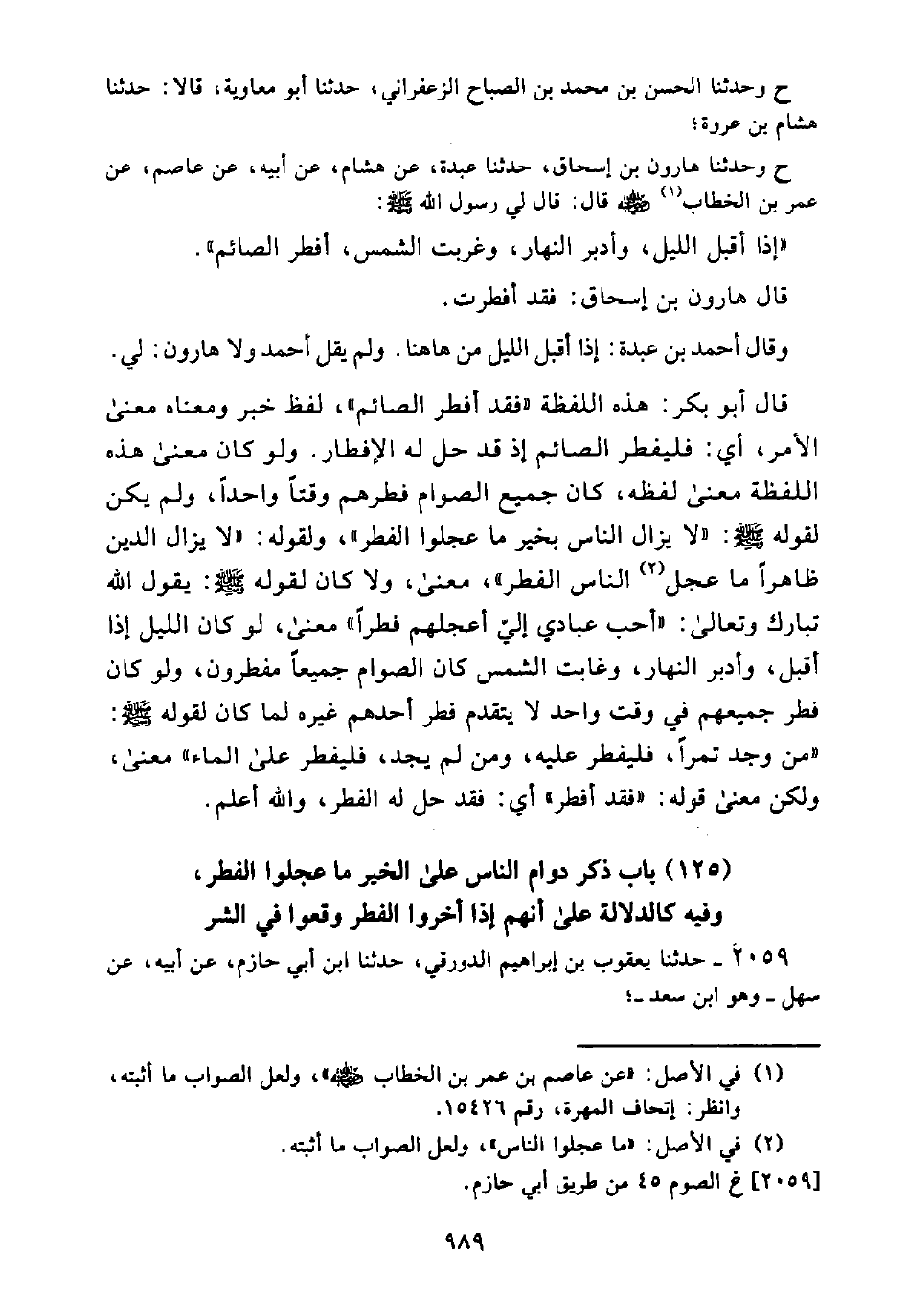 (125) بَاب ذِكْر دَوَامِ النَّاسِ عَلَى الْخَيْرِ مَا عَجَّلُوا الْفِطْرَ، وَفِيهِ كَالدِّلَالَةِ عَلَى أَنَّهُمْ إِذَا أَخَّرُوا الْفِطْرَ وَقَعُوا فِي الشَّرِّ