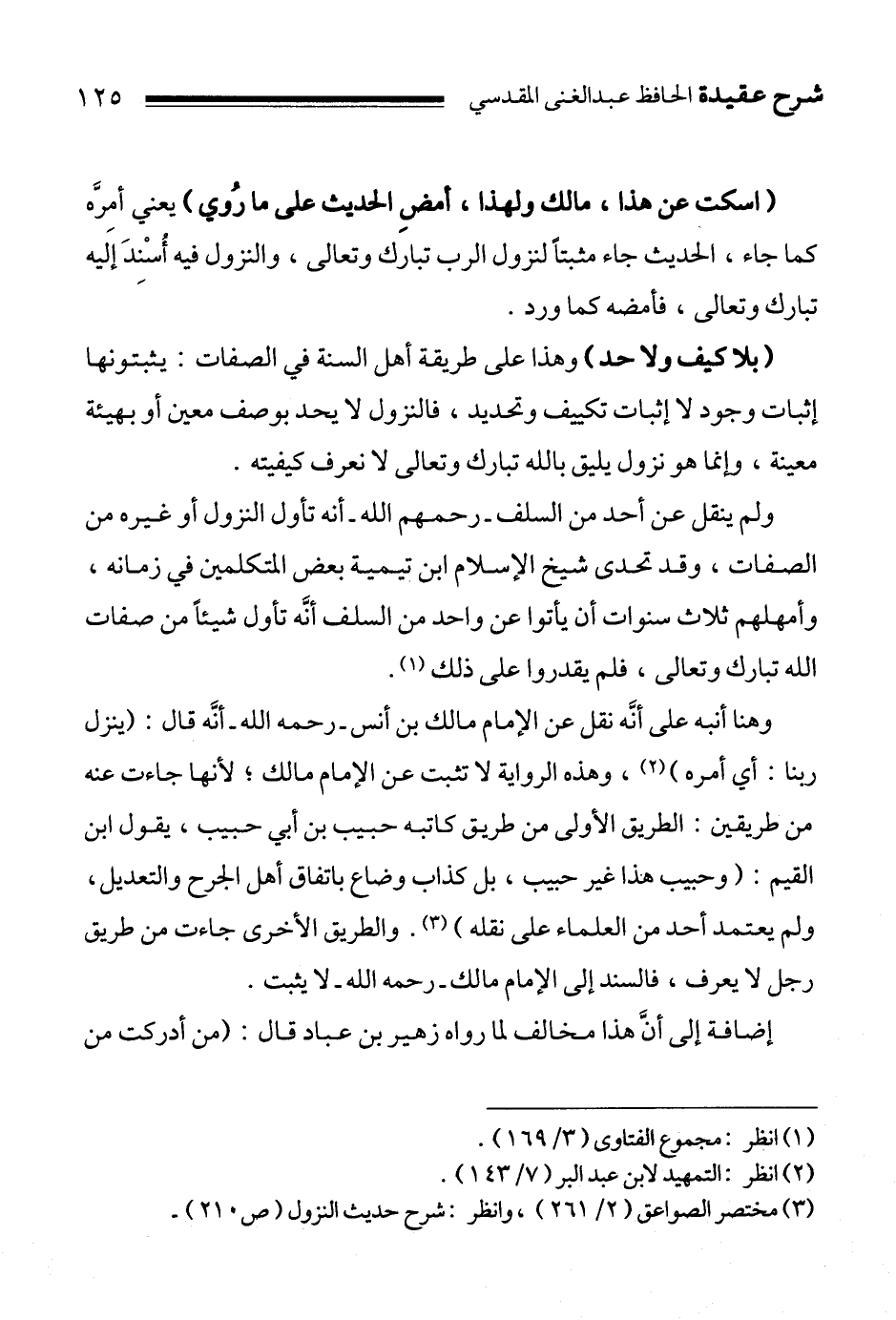 ولم ينقل عن أحد من السلف ـ رحمهم الله ـ أنه تأول النزول أو غيره من الصفات، وقد تحدى شيخ الإسلام ابن تيمية بعض المتكلمين في زمانه، وأمهلهم ثلاث سنوات أن يأتوا عن واحد من السلف أنَّه تأول شيئاً من صفات الله تبارك وتعالى، فلم يقدروا على ذلك 1.