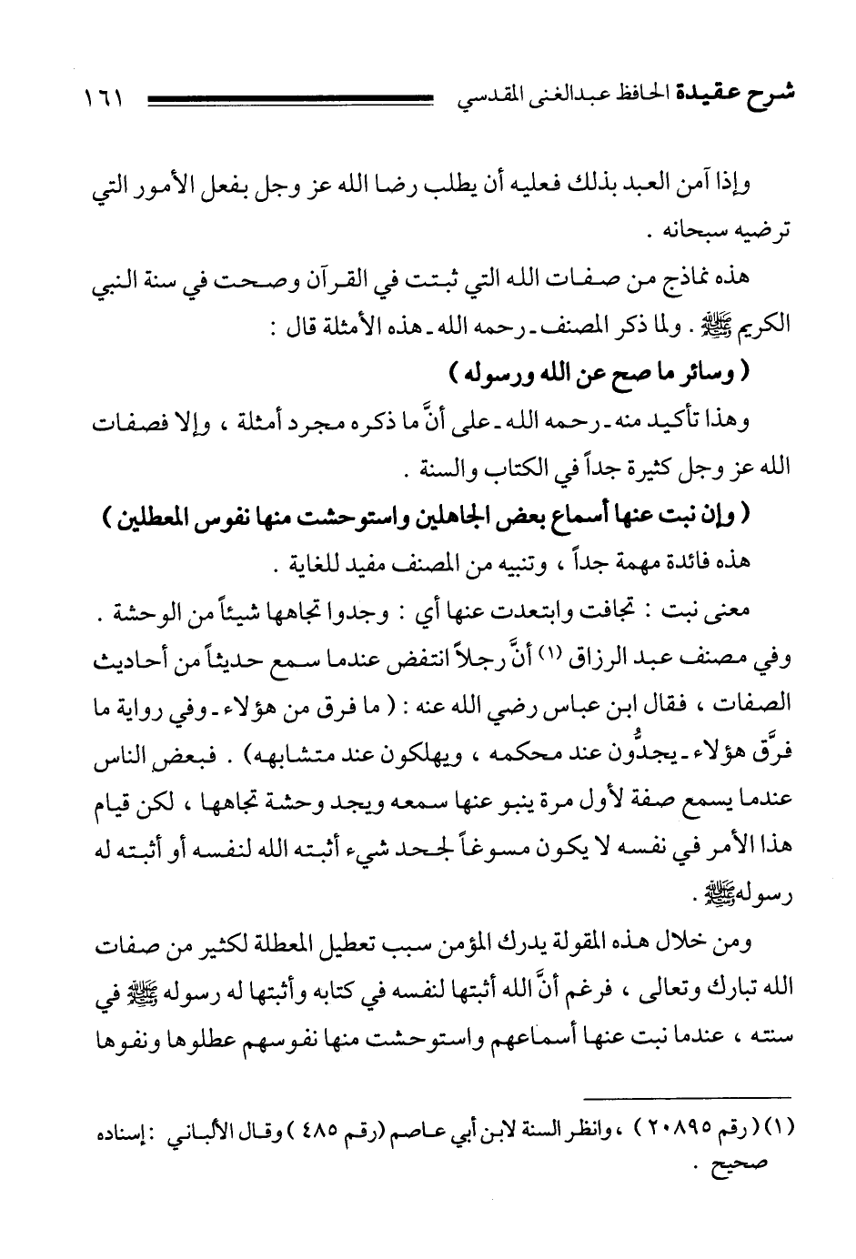 " وإن نبت عنها أسماع بعض الجاهلين واستوحشت منها نفوس المعطلين "