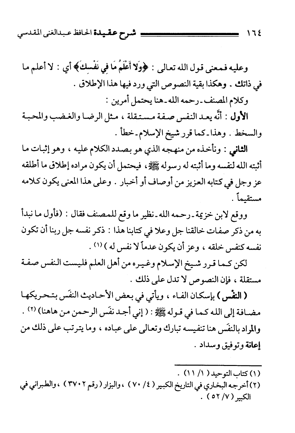لكن كما قرر شيخ الإسلام وغيره من أهل العلم فليست النفس صفة مستقلة، والنصوص لا تدل على ذلك.